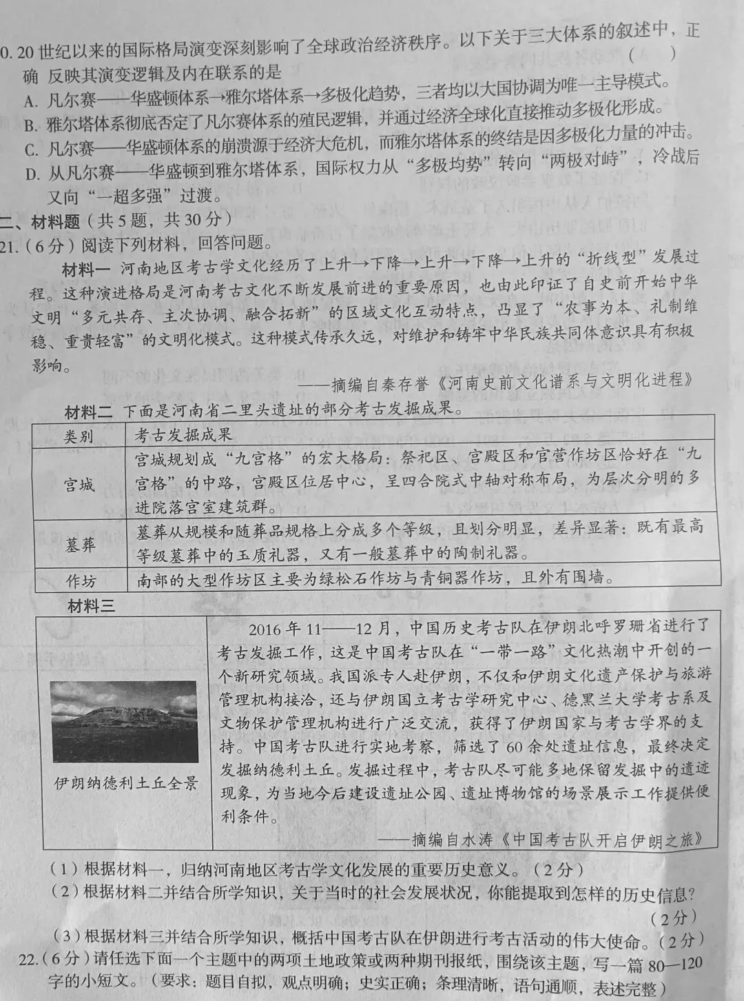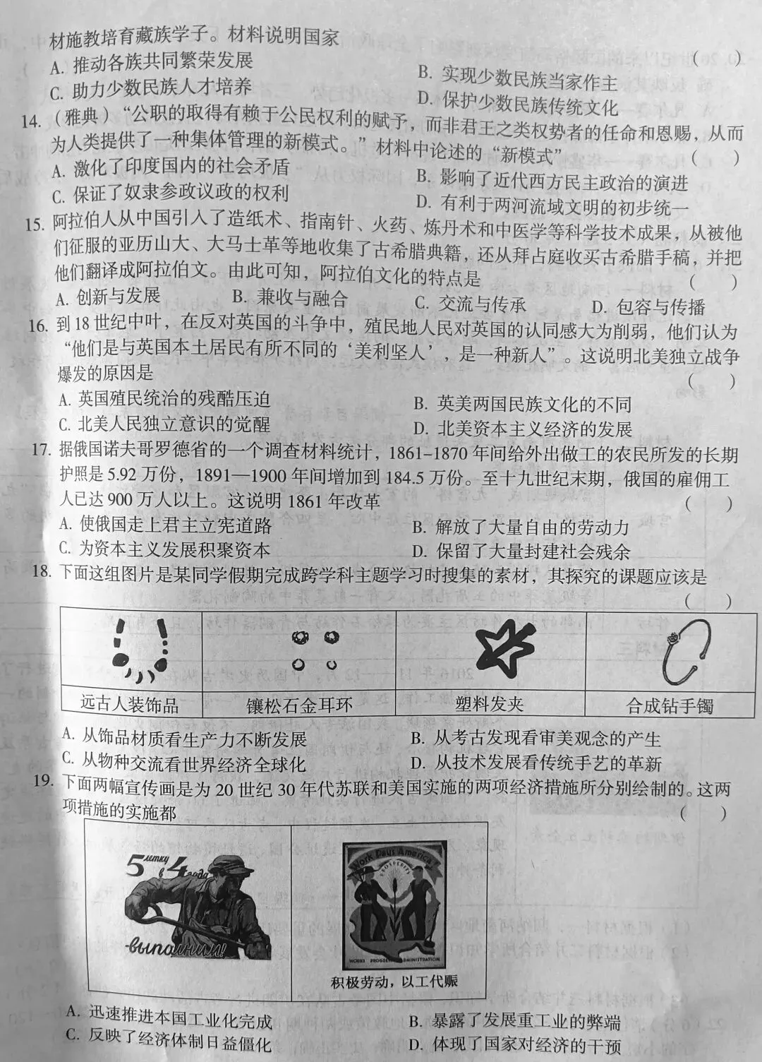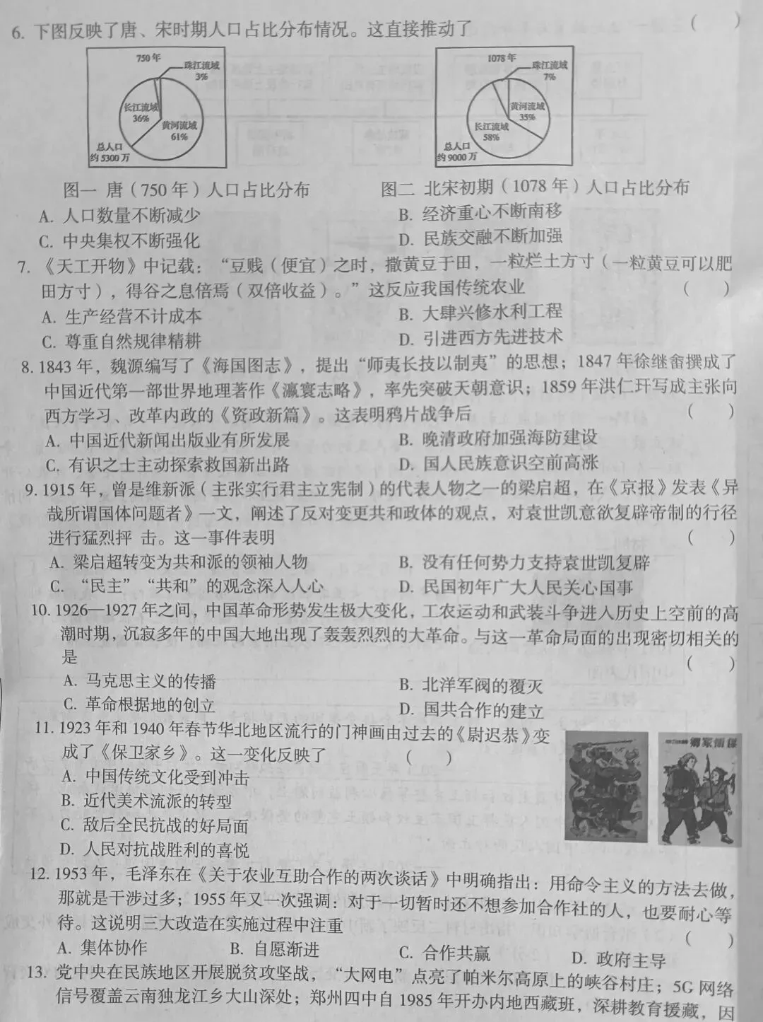 郑州四中一模历史试卷及答案