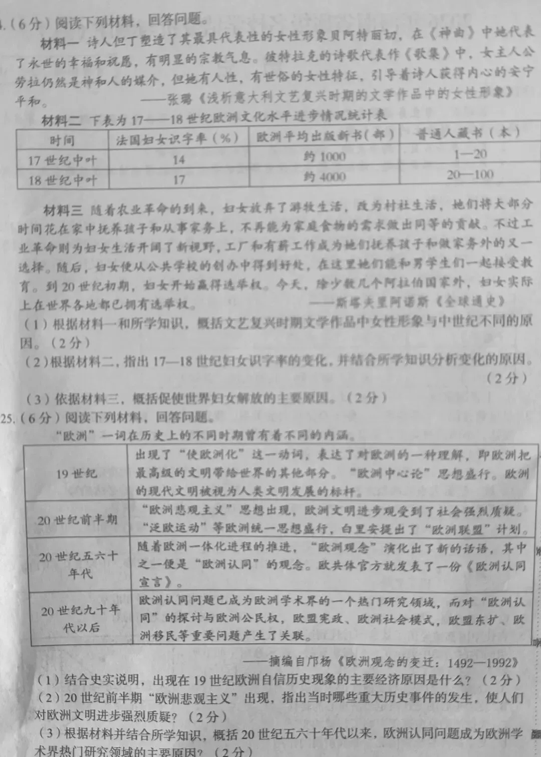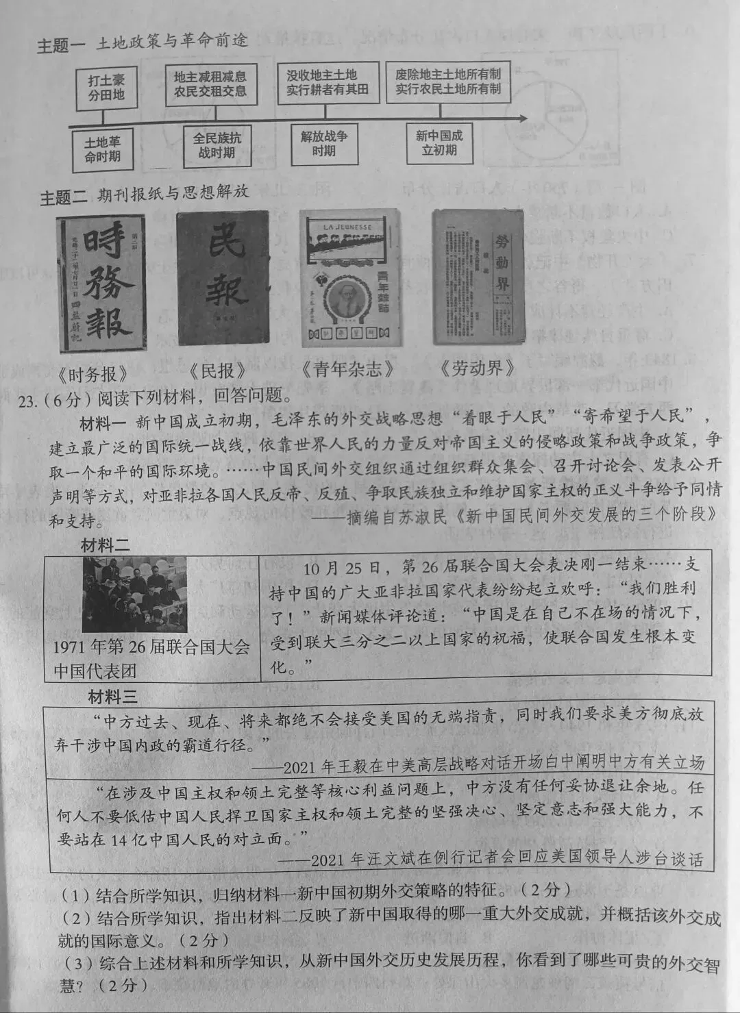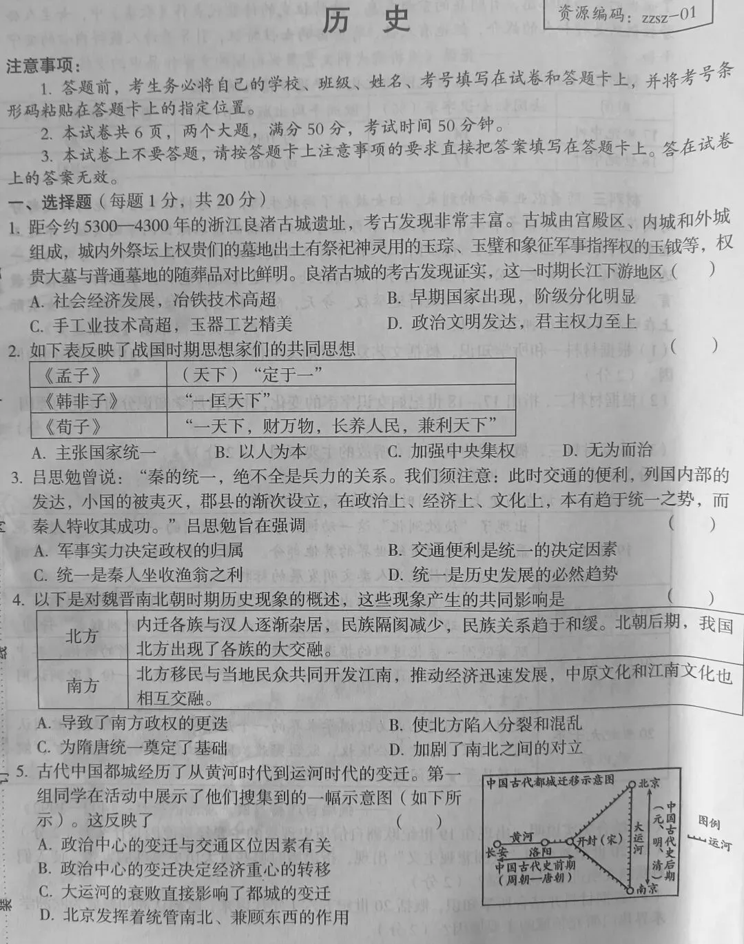 郑州四中一模历史试卷及答案