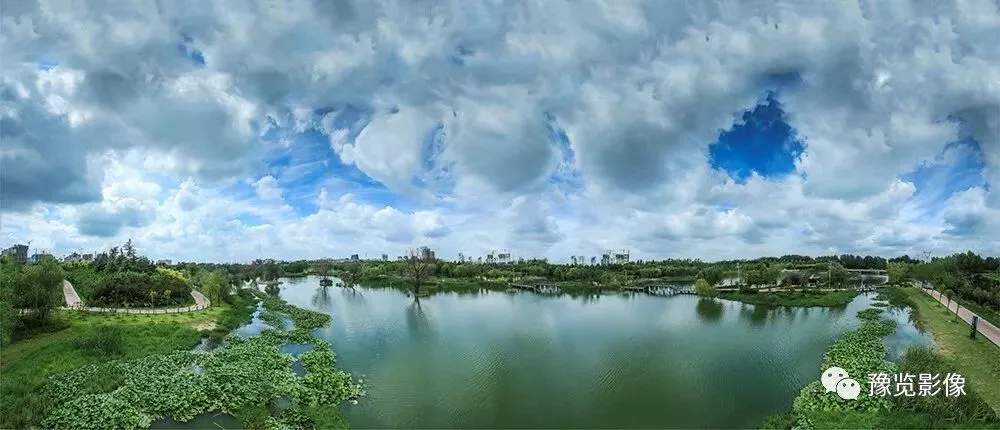 我在郑州的湖边街头等你,好想陪你去散步,微风拂发,郑州的天空总有大片的云朵,飘着各种各样的图案,惹人注目。