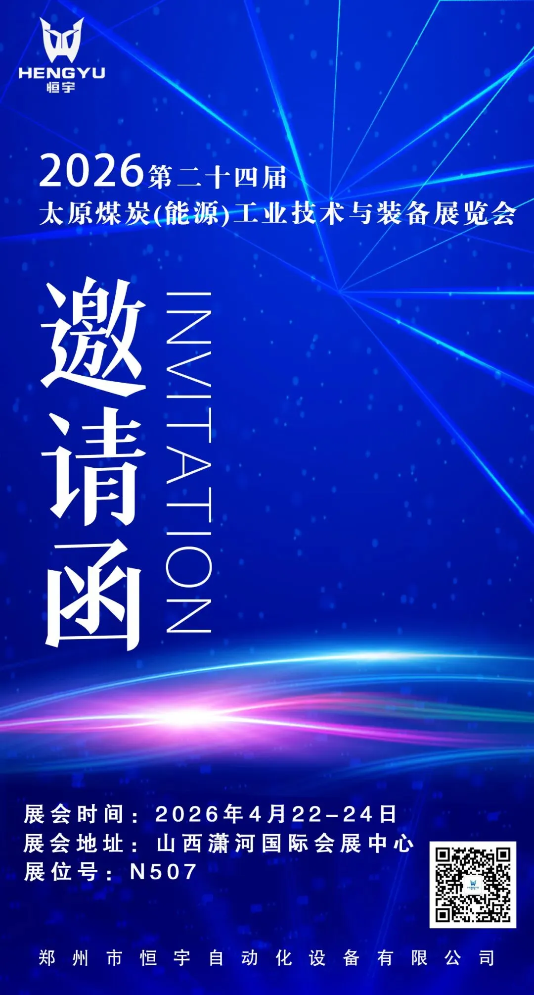以技术赋能矿山,以品质服务客户,助力煤炭行业安全高效、绿色智能发展。春风四月,相聚太原。我们在N507 展位恭候您的到来,面对面交流技术、对接需求、共谋合作。郑州市恒宇自动化设备有限公司与您不见不散!
