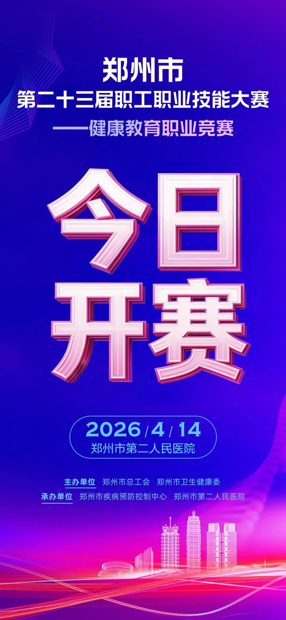 郑州市第二十三届职工职业技能大赛——健康教育职业竞赛今日开赛!让我们共同聚焦赛场,一起见证郑州健康科普的巅峰时刻,共赴这场关乎全民健康的荣耀之约!