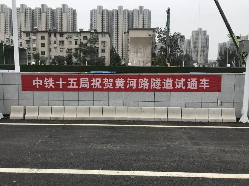黄河路西延隧道工程起始端位于金水西路与西站北街交叉口,延金水西路向东,下穿月季公园、金海怡翠苑小区、嵩山北路后接入黄河路下穿北编组站隧道主线,全长1035m,主线双向4车道,与地铁5号线同步设计、同步施工。地面辅道东起西站东街,西至西站北街,全长375米,采用双向6车道设计标准。