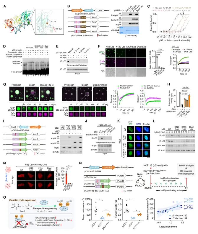 p53位点特异性乳酸化削弱其DNA结合和液-液相分离,降低肿瘤抑制功能