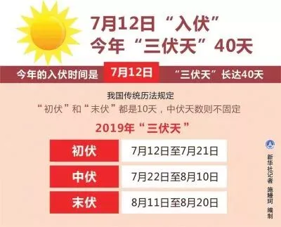 具体来说,7月12日至7月21日为“初伏”,7月22日至8月10日为“中伏”,8月11日至8月20日为“末伏”,共计40天!到时候走在路上的状态就是: