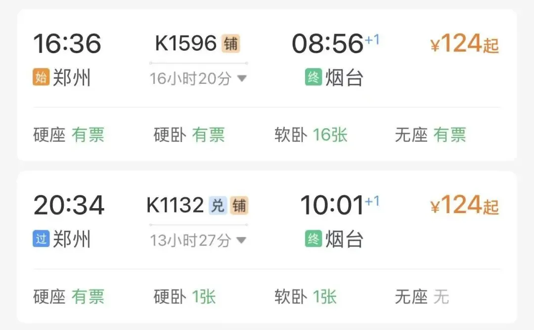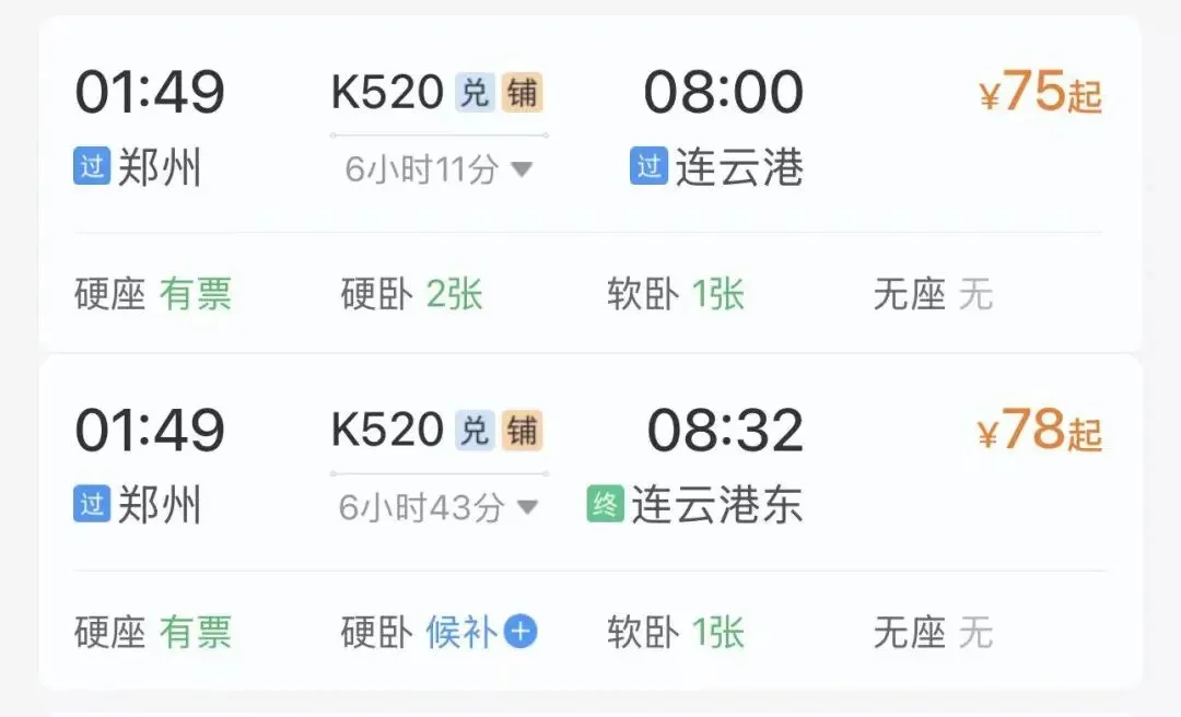 2️⃣火车出行(票价便宜,卧铺一夜直达):