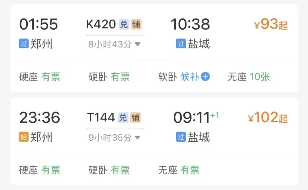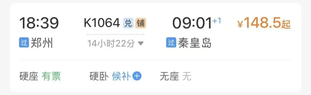2️⃣火车出行(票价便宜,但时长较长):