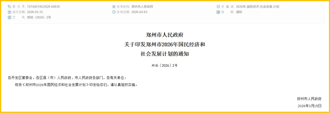 也就是最近郑州市发布了郑州市2026年的国民经济和社会发展计划。