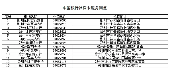 银行社保卡服务窗口网点信息