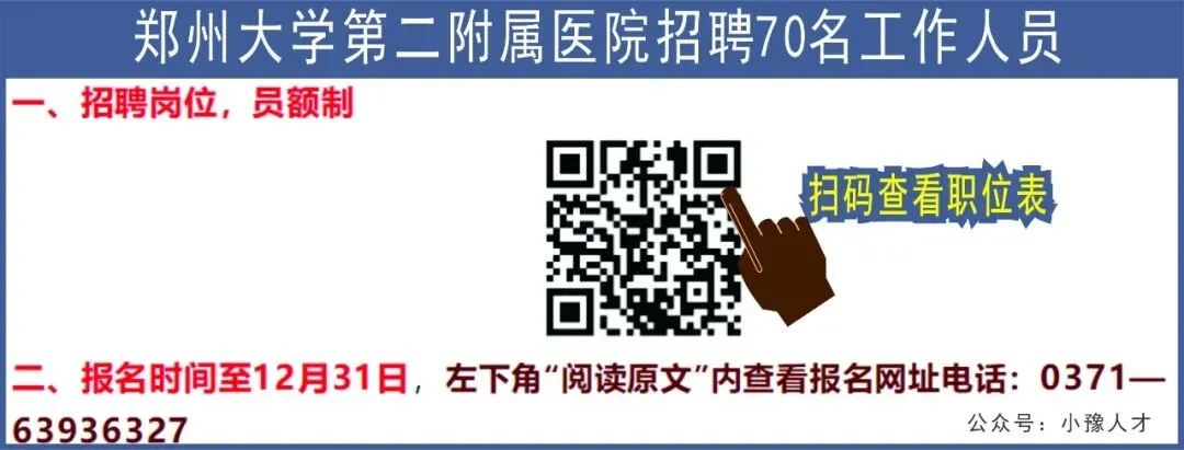 郑州大学第二附属医院招聘70名工作人员【至12.31】