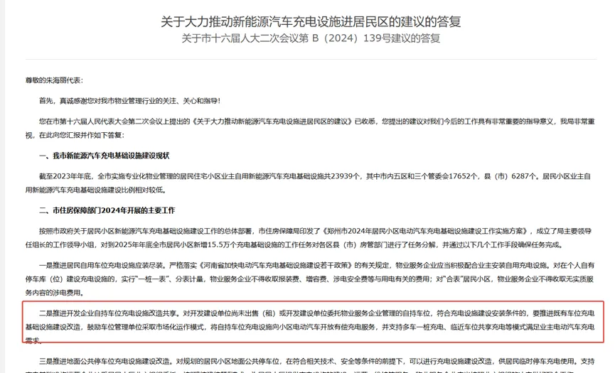 3、符合政府导向:郑州市明确鼓励居住小区提供充电设施共享服务,支持多车一桩,临近车位共享等模式。