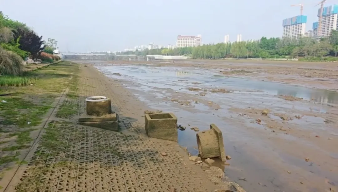 郑州贾鲁河6-9号坝维修,河水已见底,近期钓鱼别走空