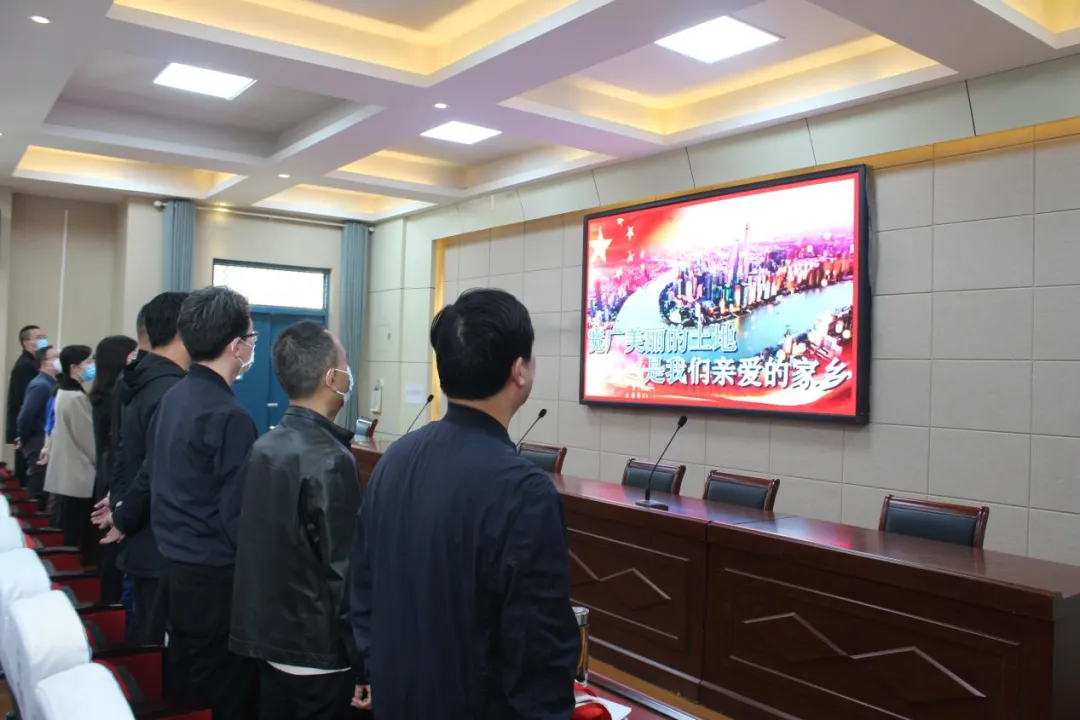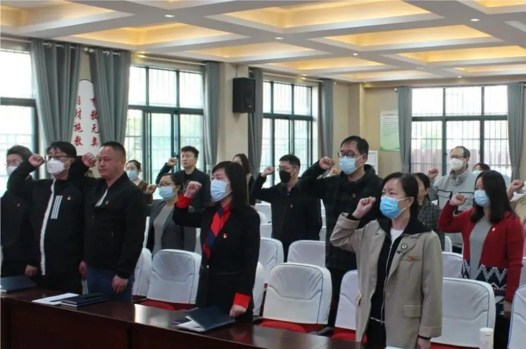 党员高举党旗,在党支部书记李琳同志带领下全体党员同志重温入党誓词,进行庄严宣誓。