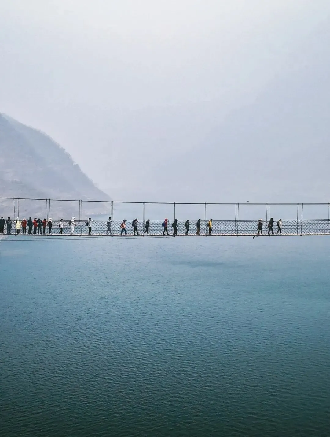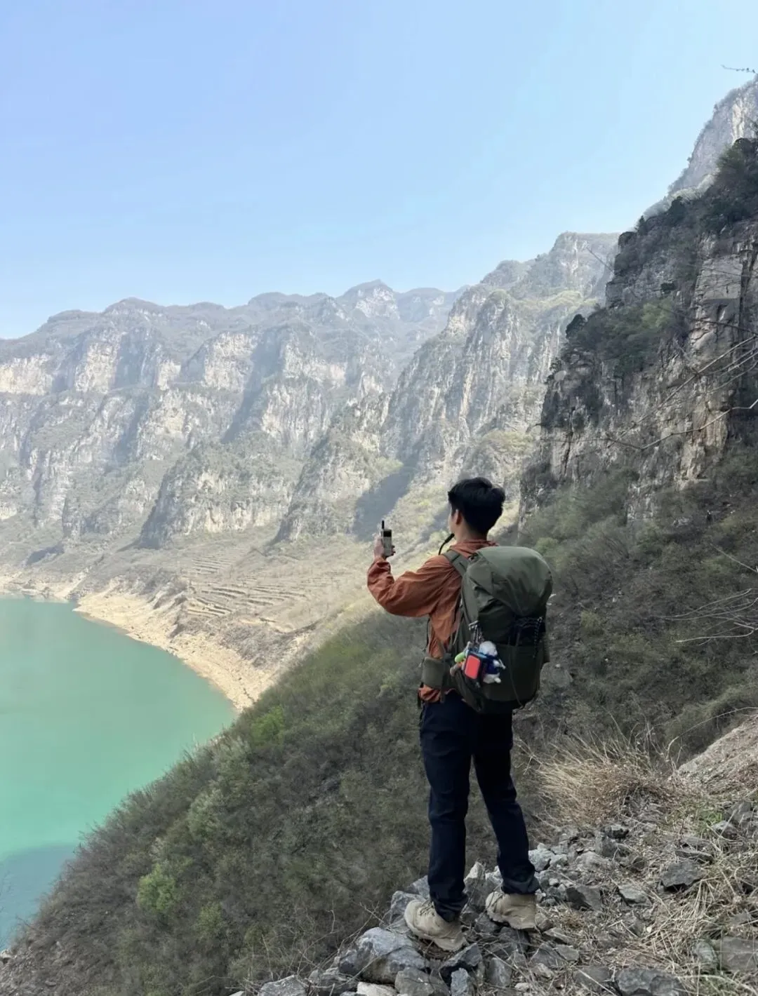 一段开凿在岩壁上的狭窄小道,脚下是几十米深的碧潭。手扶岩石慢慢走,心跳和风景一起加速。