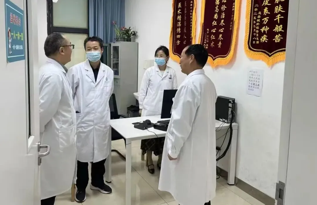 义诊期间,黄玉成教授深入皮肤科、医疗美容中心诊疗一线,实地查看诊疗流程与设备运行情况,对临床诊疗关键环节、技术操作要点进行现场带教和指导,分享前沿诊疗理念与先进技术经验,进一步提升了我院医护人员的专业水平和服务能力。