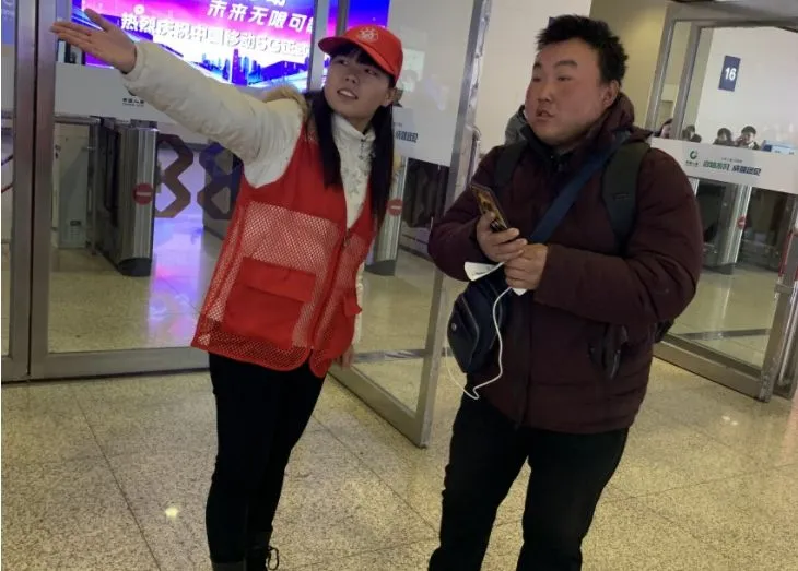 在站房一层出站口,大学生志愿者文法学院大二的马永康给一名外地旅客指引乘坐地铁的方向后,乘客还是不清楚,就亲自带领他找到地铁口,并告诉他下车的具体站点,他告诉记者,“作为青年志愿者能够为乘客做好咨询服务,帮助乘客解决难题,能够帮助到别人,我从心里面感到很开心。”