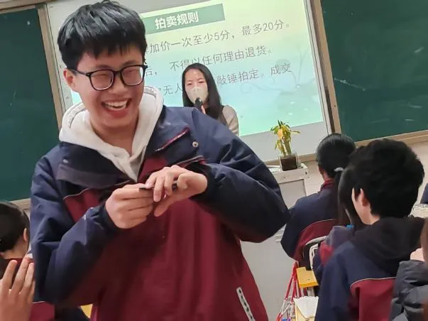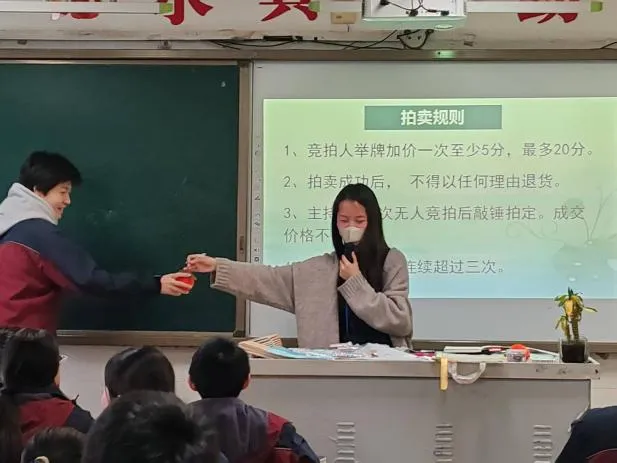 积分银行包含三个运行层次:一是日常记录,由组长每日记录积分变动,积分统计员每周统计,培养学生责任意识;二是定期公示,每周五公布积分排行,激励先进、鞭策后进;三是期末拍卖,将积分兑换转化为理财教育与取舍智慧的生动课堂。每学期末的积分拍卖会上,文具、书籍、饰品以及“免值日一天”“免作业一次”“校园写真一次”等特殊奖励依次亮相,学生在竞拍中深刻理解“付出才有回报”的道理,学会规划与取舍。
