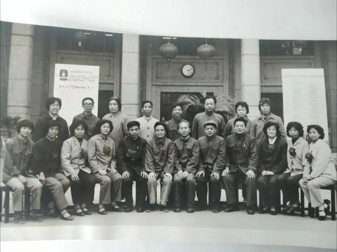 上世纪80年代初,我厂党政工团主要领导袁鸿岗、范钦熹、张盛元、吴永超、张仲杰、毛子莲、刘志全、程传清,李桂珍、马洪英和织布车间党总支书记阎宜民等领导欢送织布车间郑深央(一排左1)马汝闽(一排左2)徐步月(一排左3)张栋叶(一排左4)过照明(一排左5)谢国献(一排左9)张红(一排左10)常郑莲(一排左11)荆春娥(一排左12)九名技工赴伊拉克留影。