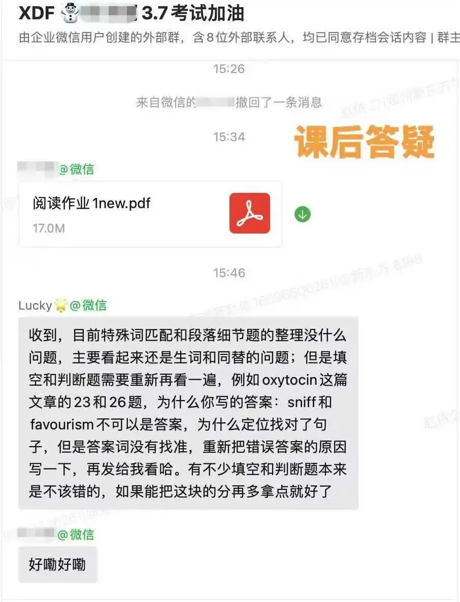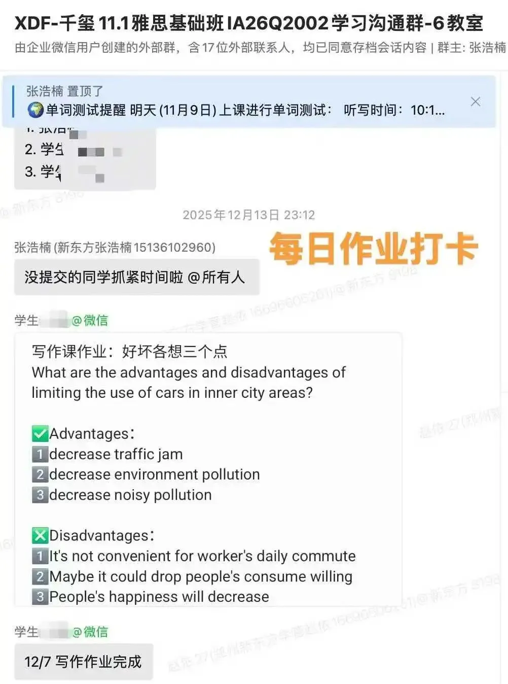 ✅单词抽测与作业批改:学管老师定期抽查单词背诵进度,作业精细批改,学情及时反馈。