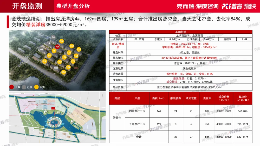 2月则出现了一个非常关键的信号:虽然春节使得总成交受到抑制,但高端改善盘金茂璞逸缦湖首开即推出123套、成交110套,去化率达到89%,将单月开盘均价拉升至37978元/㎡。2月更像是一场改善需求的压力测试,结果是这部分需求仍有承接力。