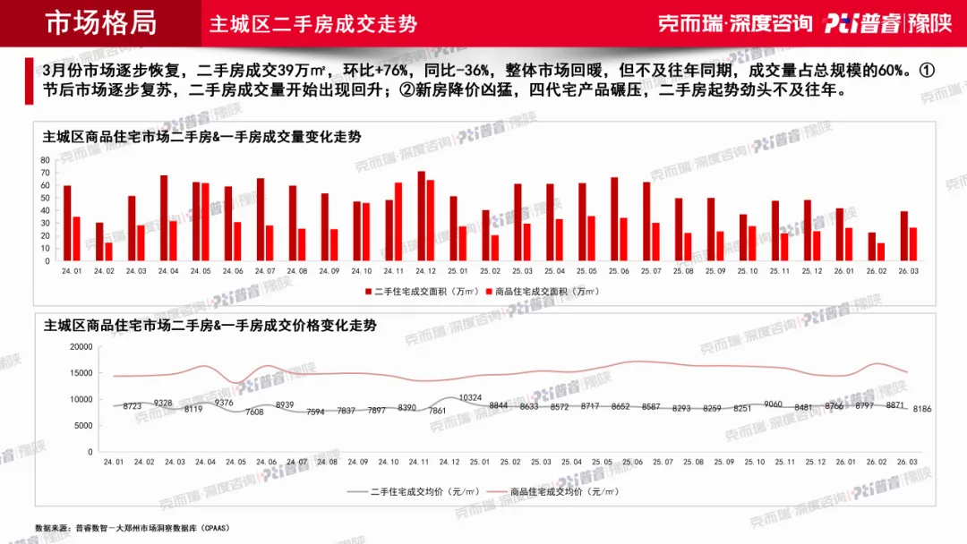 首先,3月是修复型回暖,不是趋势性反转。它代表市场已经摆脱春节真空期,需求恢复开始出现,但还不足以证明郑州楼市进入全面上行周期。