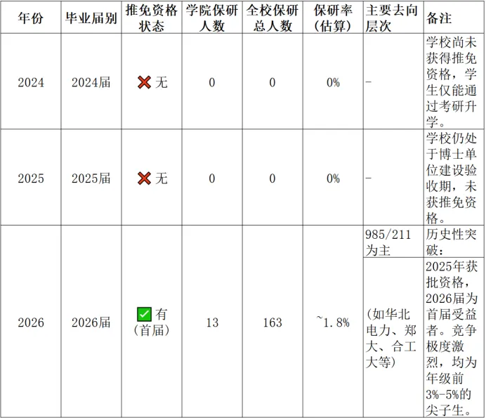 (3)参考同类高校发展路径,随着学校博士点建设成熟、学科评估等级提升(目前软科A类),未来几年名额将逐年递增。对于2027届、2028届的学生来说,机会将比2026届更多。