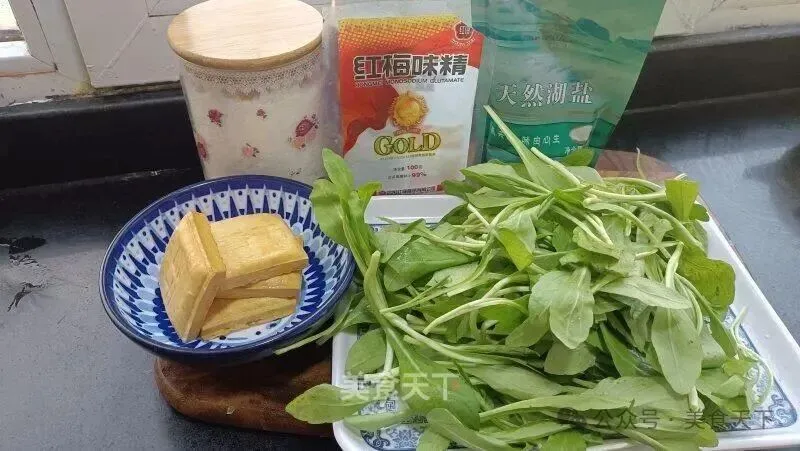 1. 所需食材:马兰头、五香豆干、盐、白糖、香油、味精(可放可不放)。