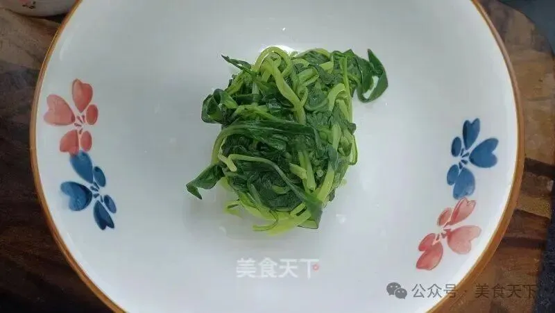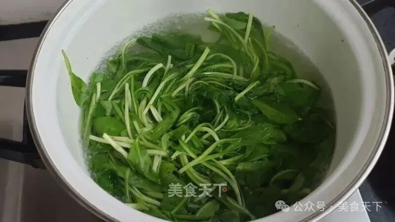 4. 水滚开后放入洗好的马兰头迅速焯水20-30秒。