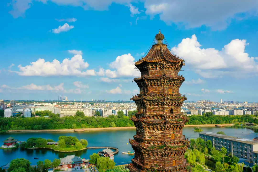 铁塔,中国现存最古老的琉璃砖塔,享有“天下第一塔”之称。塔高55.88米,八角十三层,塔身修长,气势雄伟。
