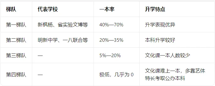 民办高中也有明显梯队差异: