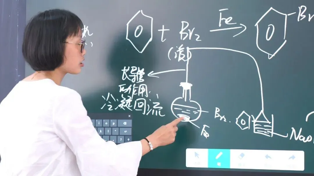 最关键的是,老师们告别了“吃粉笔灰”的年代,拿着手中的智能笔,能写能画,一键就消除!
