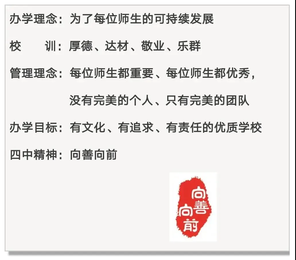 这就是四中的办学理念——为了每位师生的可持续发展。