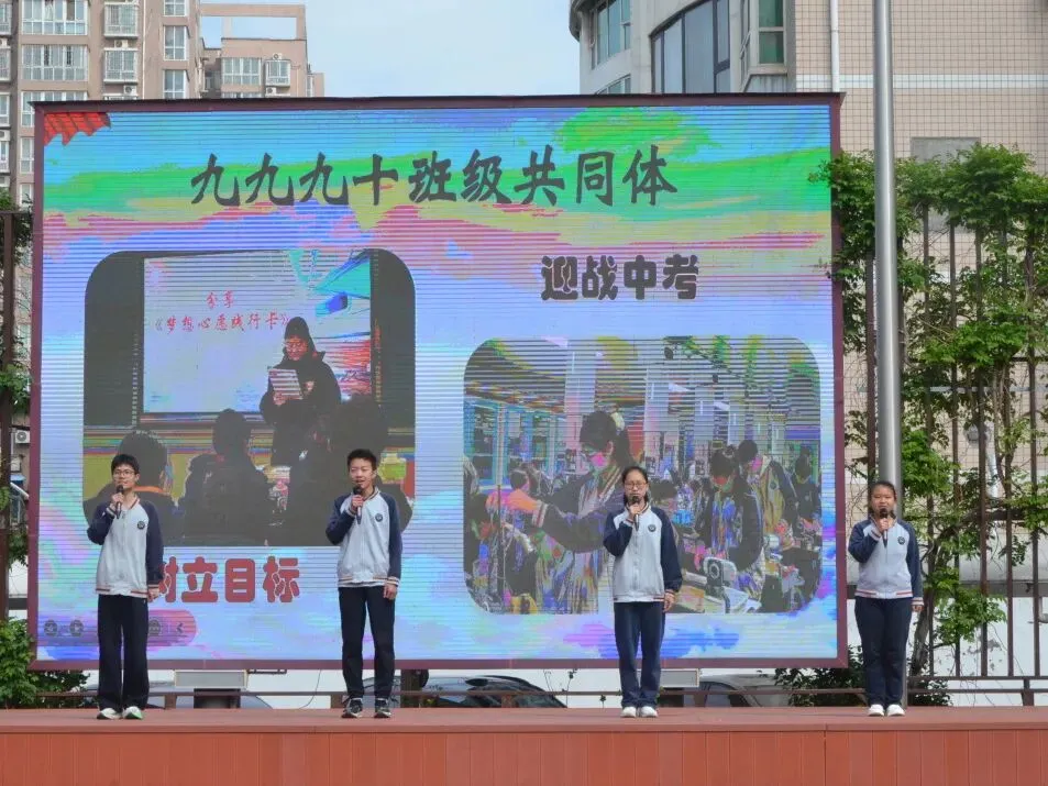 九九九十共同体进行文化展示。万星语、胡浩轩、张振祺、郝艺萱同学作国旗下演讲,倡议全体同学明确期中目标,掌握科学复习方法,调整良好应考心态,高效复习、劳逸结合,以扎实状态迎战期中调研,用奋斗书写青春。