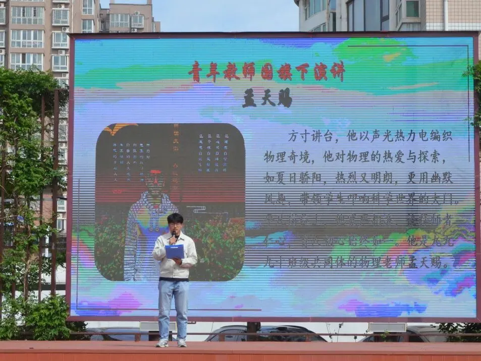 青年教师孟天赐进行演讲,他呼吁全体同学回归课本、查漏补缺、合理安排时间;端正心态、诚信应考,以平常心从容应对;团结互助、共同进步,在校园里营造比学赶超的浓厚学风,以实干与奋进收获优异成绩。