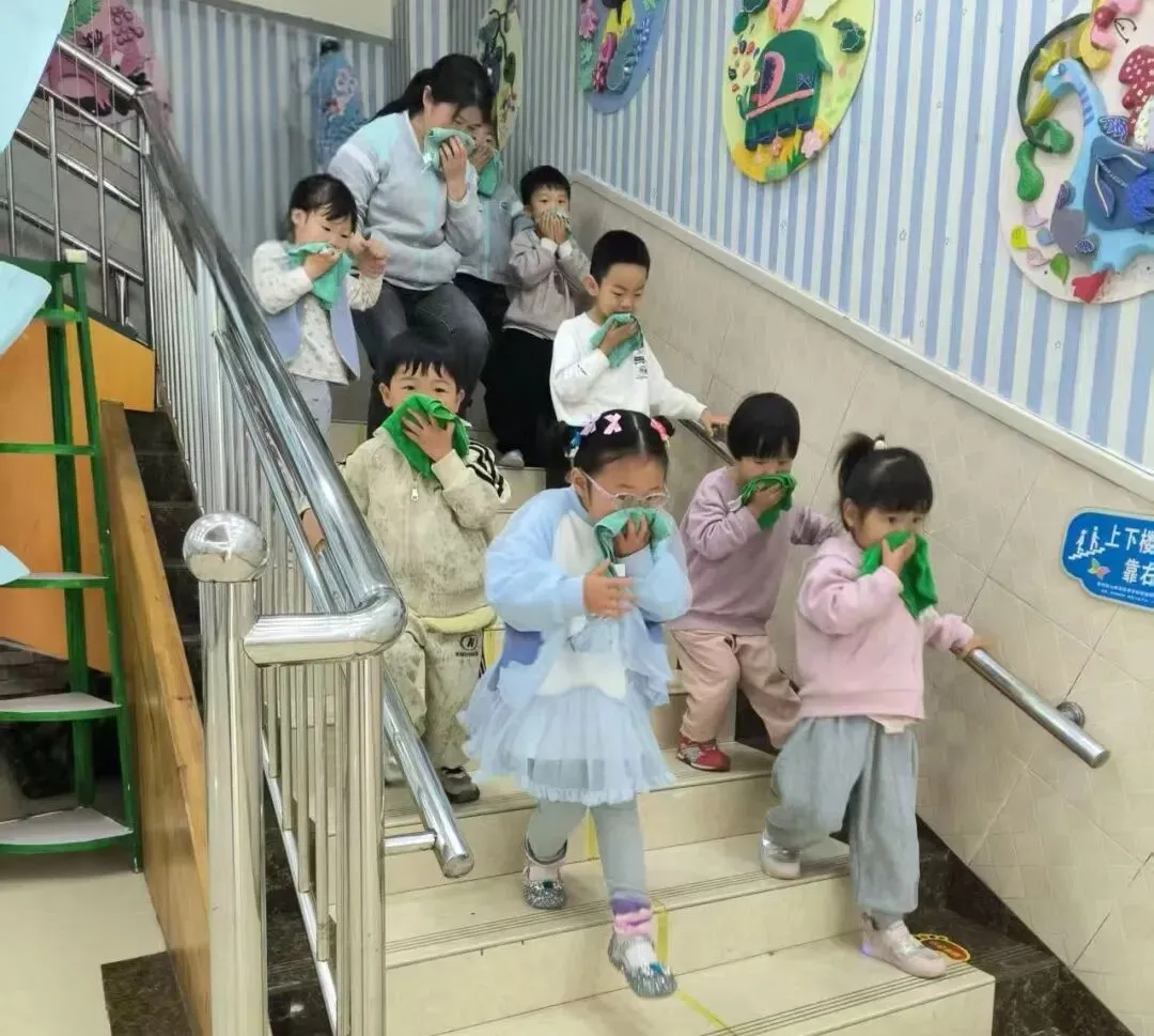 伴随着急促的警报声,一场实战模拟演练拉开序幕。全园师生反应迅速,孩子们在老师的引导下,低头弯腰、捂住口鼻,沿着预设路线有序撤离到操场安全地带。从教室到空旷处,整个过程忙而不乱,这种肌肉记忆的训练,比任何说教都更有力量。