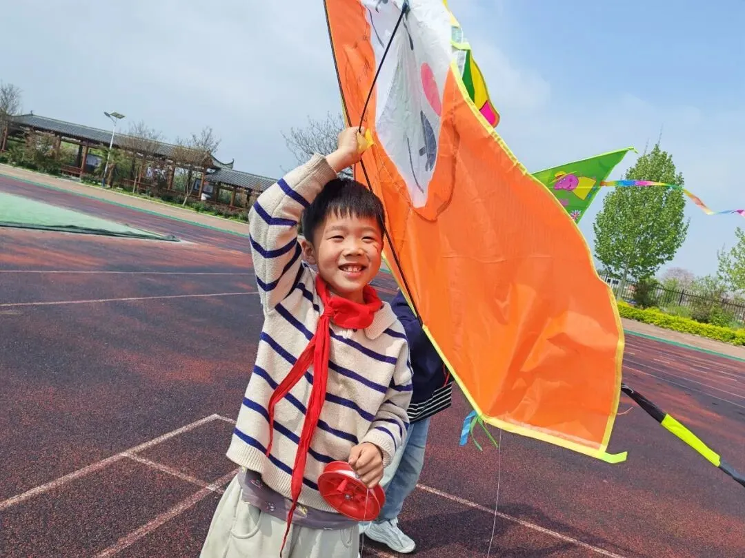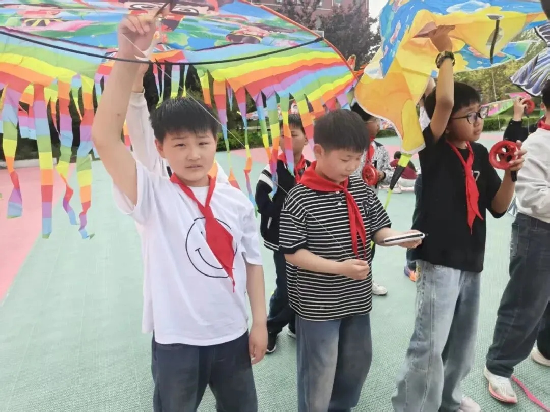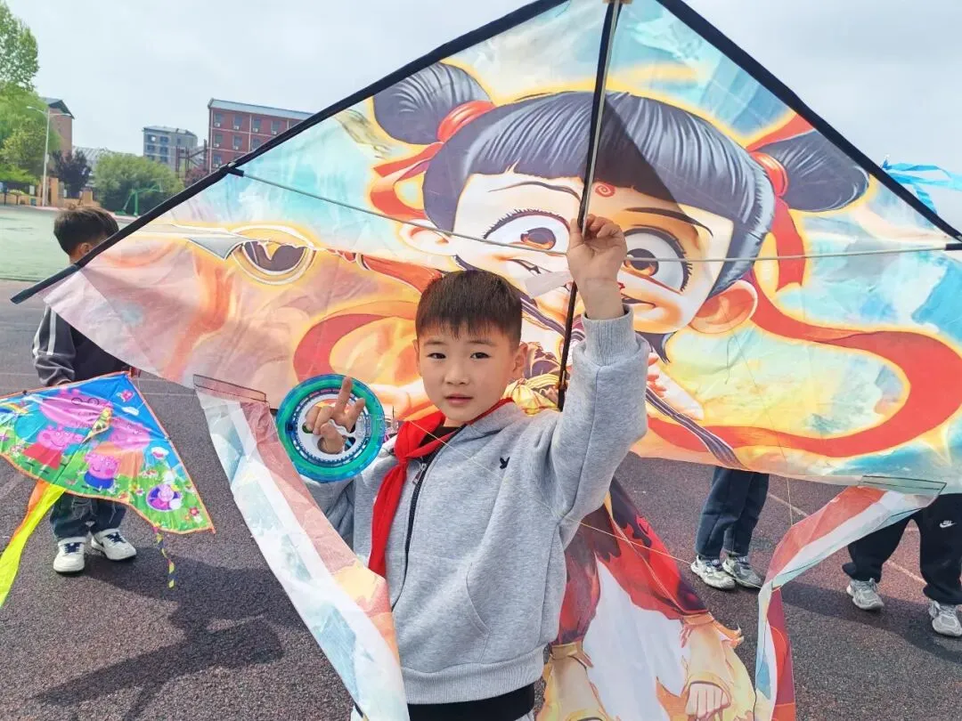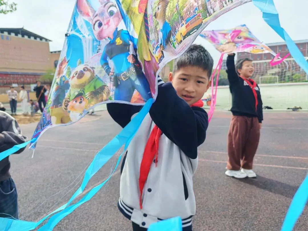 活动当天,校园内处处洋溢着欢快氛围。操场之上,风筝展示区整齐排列着各班的特色作品,孩子们化身“小小解说员”,自豪地向老师和同学介绍自己的风筝。