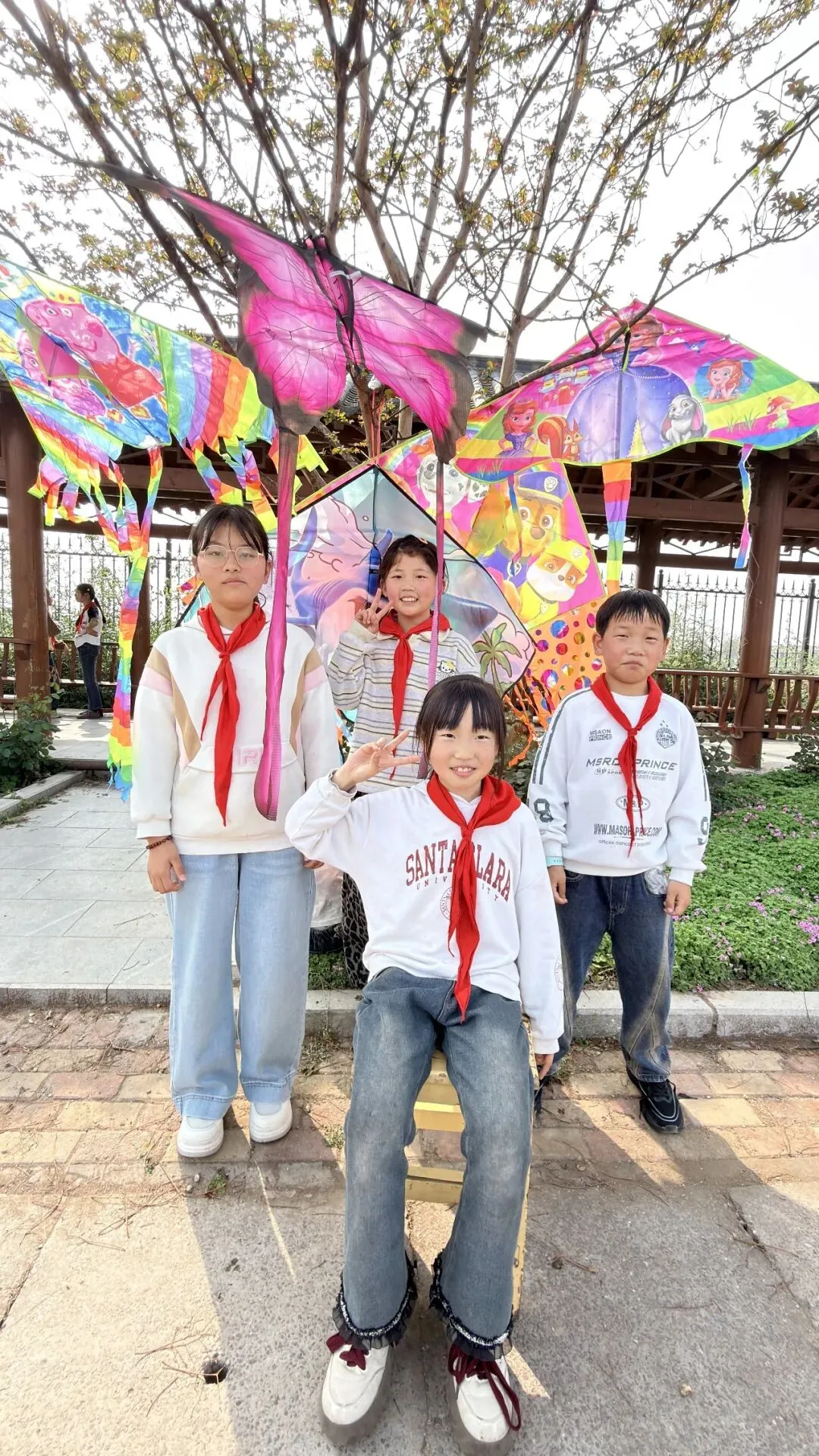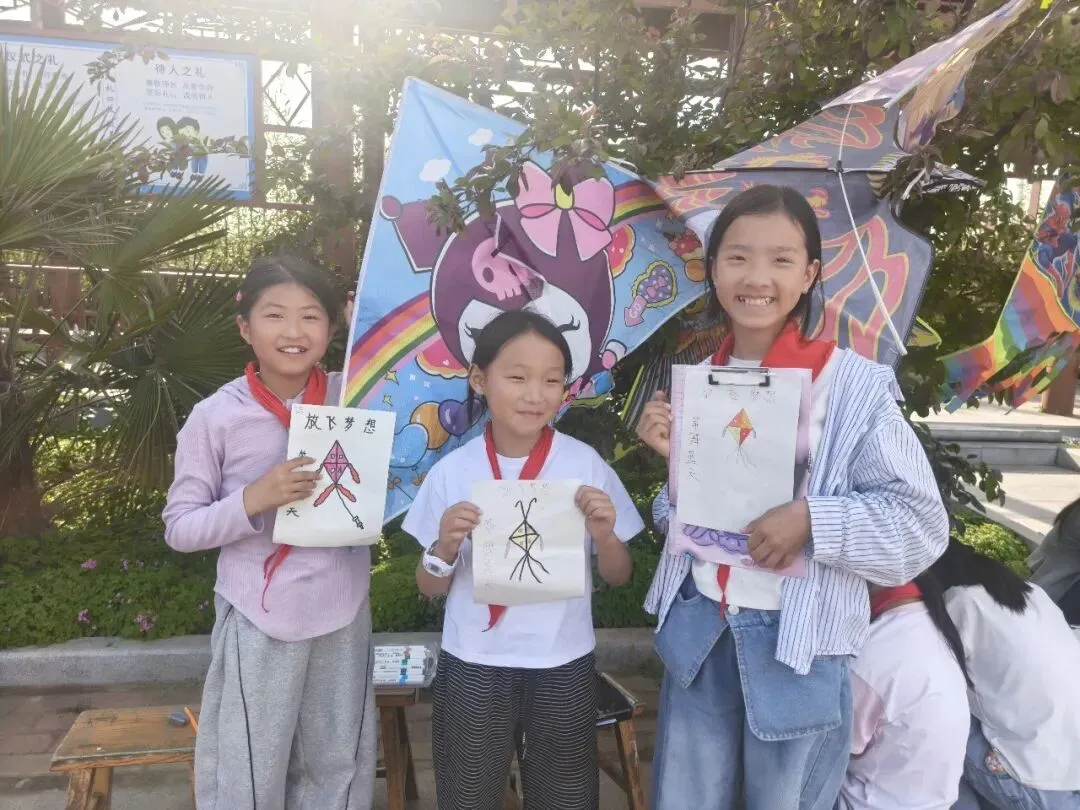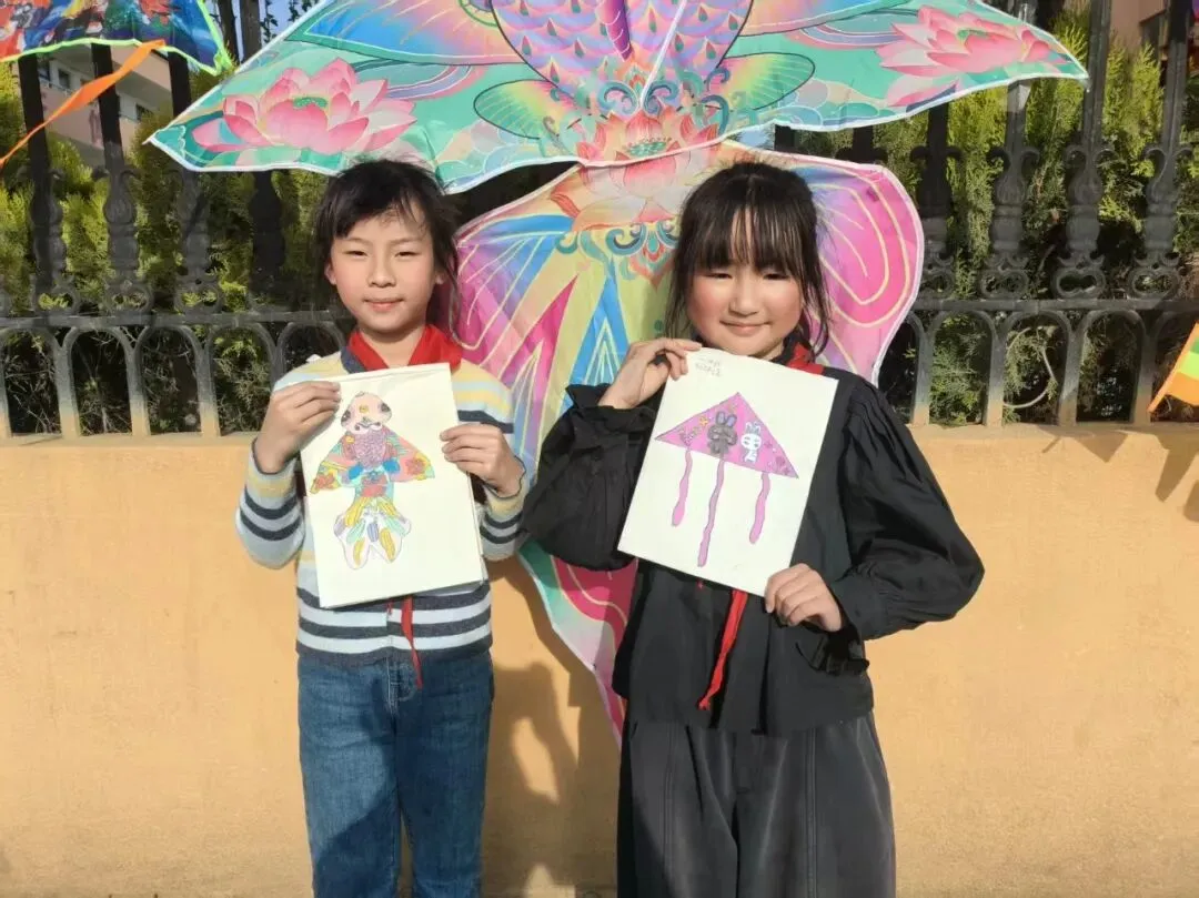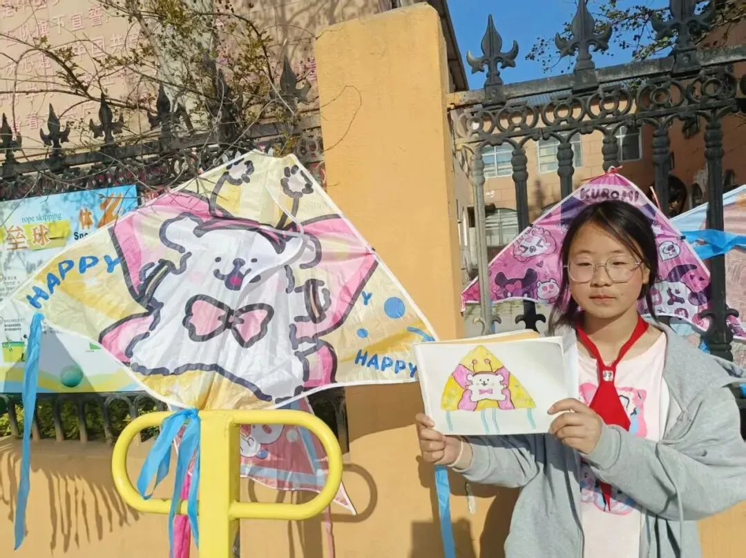 活动当天,校园内处处洋溢着欢快氛围。操场之上,风筝展示区整齐排列着各班的特色作品,孩子们化身“小小解说员”,自豪地向老师和同学介绍自己的风筝。