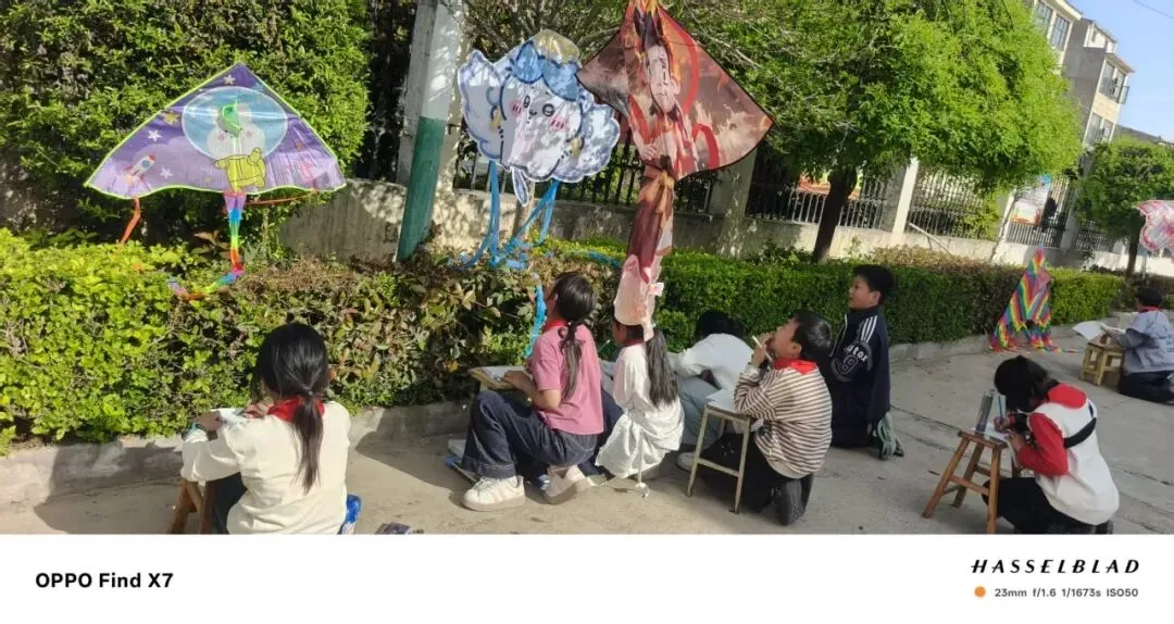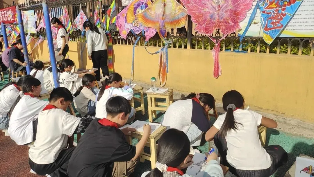与此同时,各年级写生绘画活动同步开展。在校园的花坛边、操场旁、长廊下,孩子们手持画笔,以风筝、春日景致、同学们的放飞瞬间为创作对象,用细腻的笔触捕捉春日美好。低年级孩子用稚嫩的线条描绘风筝的色彩,高年级学生则以更丰富的构图展现春日氛围,一幅幅作品或清新灵动,或大气磅礴,充分展现了孩子们的观察力与艺术表现力。这些作品后续将在校园宣传栏进行展示,让美育之美浸润校园每一个角落。此次风筝节,将传统文化、艺术教育与体育活动有机融合,不仅为孩子们提供了展示自我、释放活力的平台,更让他们在实践中感受春天的气息、体验创作的乐趣、收获合作的快乐。孙校长表示,学校将持续以校园文化活动为载体,深耕美育内涵,创新教育形式,让孩子们在丰富多彩的活动中强健体魄、涵养品格、启迪智慧,全面健康成长。