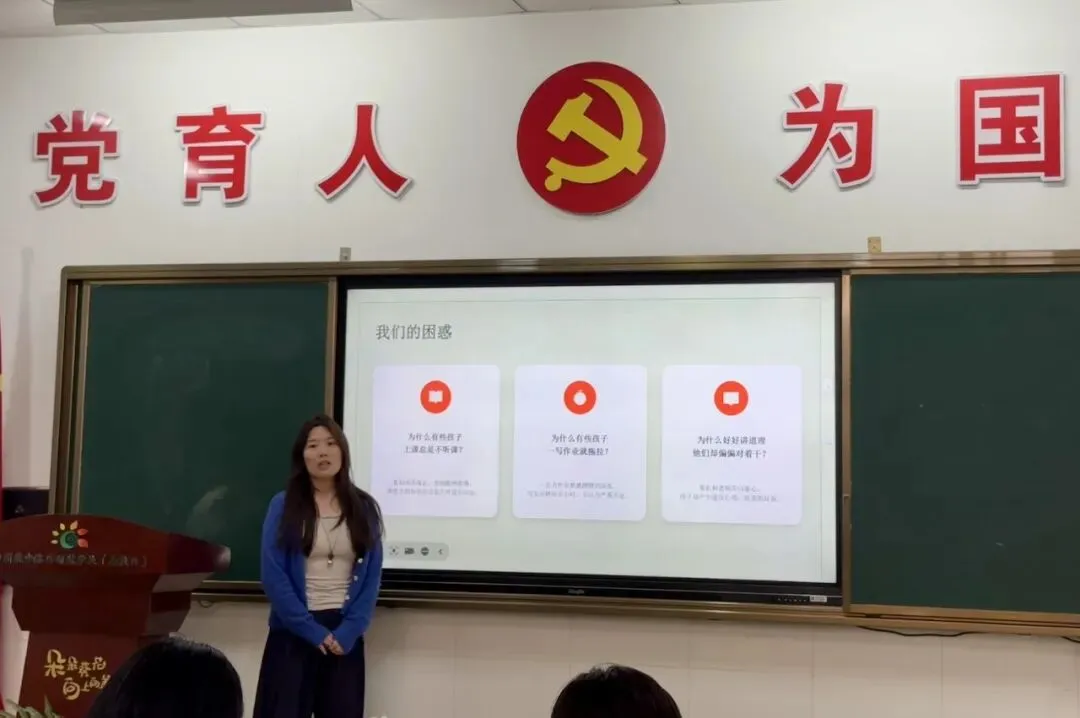 张嘉雯老师围绕《教师·挑战》一书,结合班级实际分享感悟。重点解读了儿童不良行为背后的四种心理动机,提出应读懂孩子行为根源,用理解与尊重替代指责,以专业智慧走进学生内心,提升教育实效。
