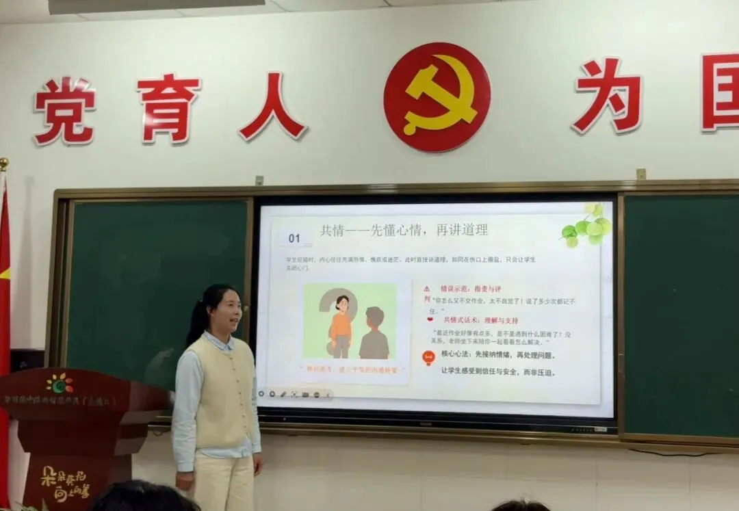 许宁老师围绕《给教师的建议》一书,结合自身教学实践分享感悟。她从提升课堂效率、优化师生沟通、促进学生全面发展等多个维度展开交流,强调教师要在日常教学中关注细节、反思成长,用专业与热爱赋能每一堂课,助力学生健康成长,让教育真正发生在学生的心灵深处。