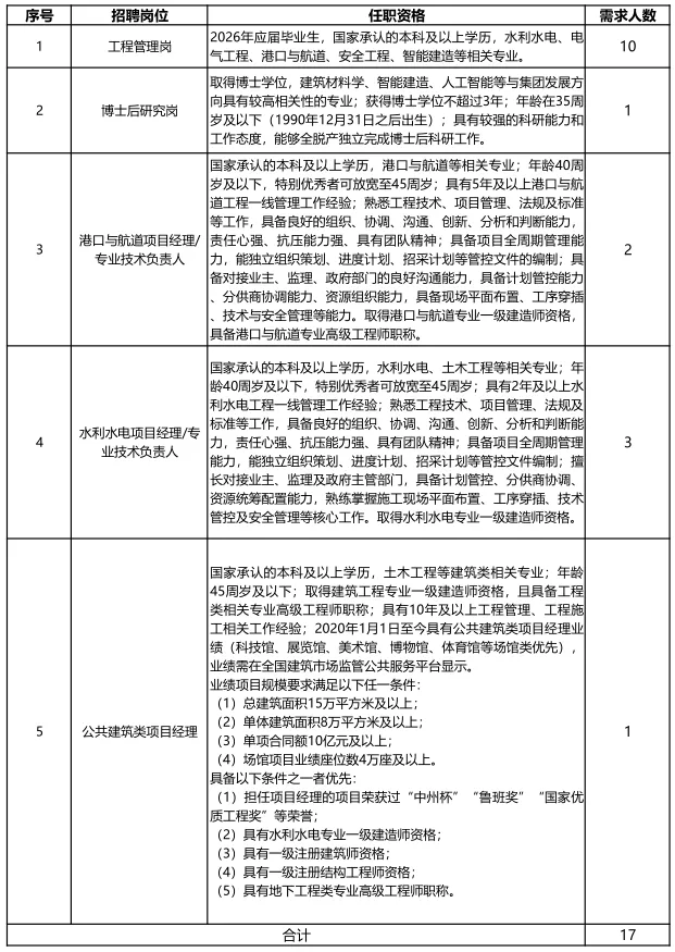因企业发展和人才队伍建设需要,现面向社会和2026年应届毕业生进行公开招聘,具体事宜如下:
