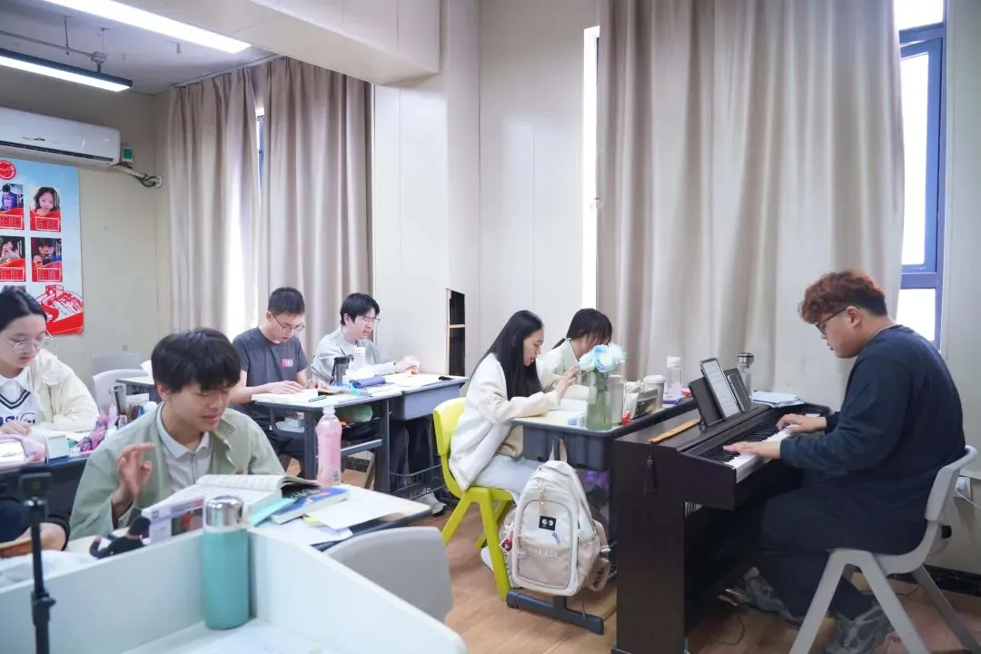 午间督查,查漏补缺不松懈:午间时段,班主任主动督查学子背诵任务,针对乐理知识点、文化课重点内容,逐一检查、耐心答疑,帮学子梳理易错点、巩固知识点,利用碎片化时间补齐短板,让每一段学习时光都充满价值,不留下任何知识漏洞。