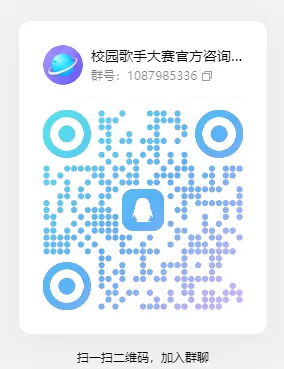 (三)咨询沟通:报名后务必扫描下方大赛官方QQ群二维码进群,赛事通知、伴奏提交、抽签安排、晋级结果等均在群内发布,未进群视为自动放弃参赛资格。