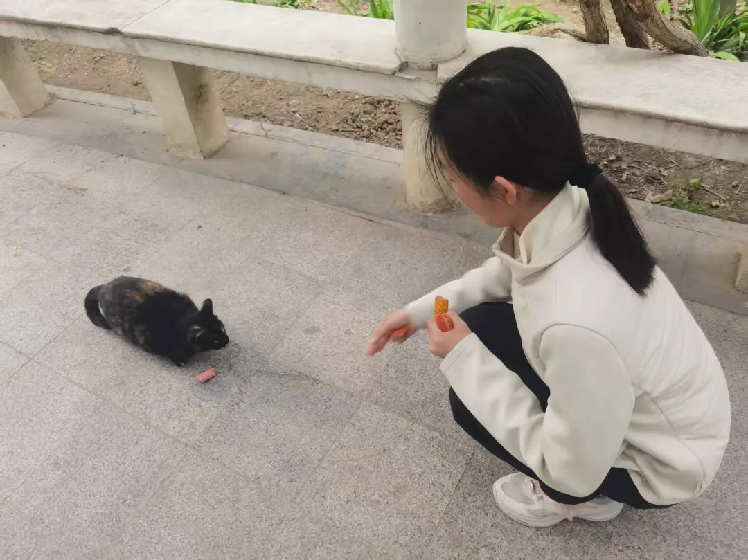 虽然这只是一次小小的行动,却让我真切感受到付出爱心的快乐。猫咪们安心进食的样子,就是对我最好的回应,也让我懂得,只要真心付出,一次善举也很有意义。那一刻我明白了,爱心不分大小,只要用心去做,就能给世界带来温暖。