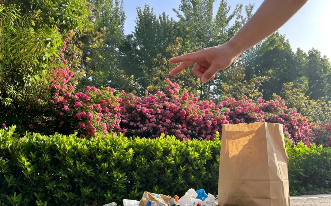 我不得不钻进灌木丛,树枝刮在我的衣服上,时不时还扎一下我的手。汗水顺着额头滑落,浸湿了后背,双手也慢慢酸痛。看着手中的纸袋渐渐被添满,我忽然意识到,那些我们平时随手丢弃的垃圾,清理起来竟如此费力。