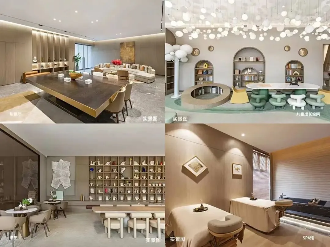 对标“apple store”设计美学,约12M通高玻璃幕墙,打破空间界限,配合中心水景庭院,景观与社交无界渗透,形成立体落差下沉会所;内部涵盖四点半课堂、瑜伽室、定制SPA、家庭厅、咖啡吧等,覆盖日常高频社交场景。