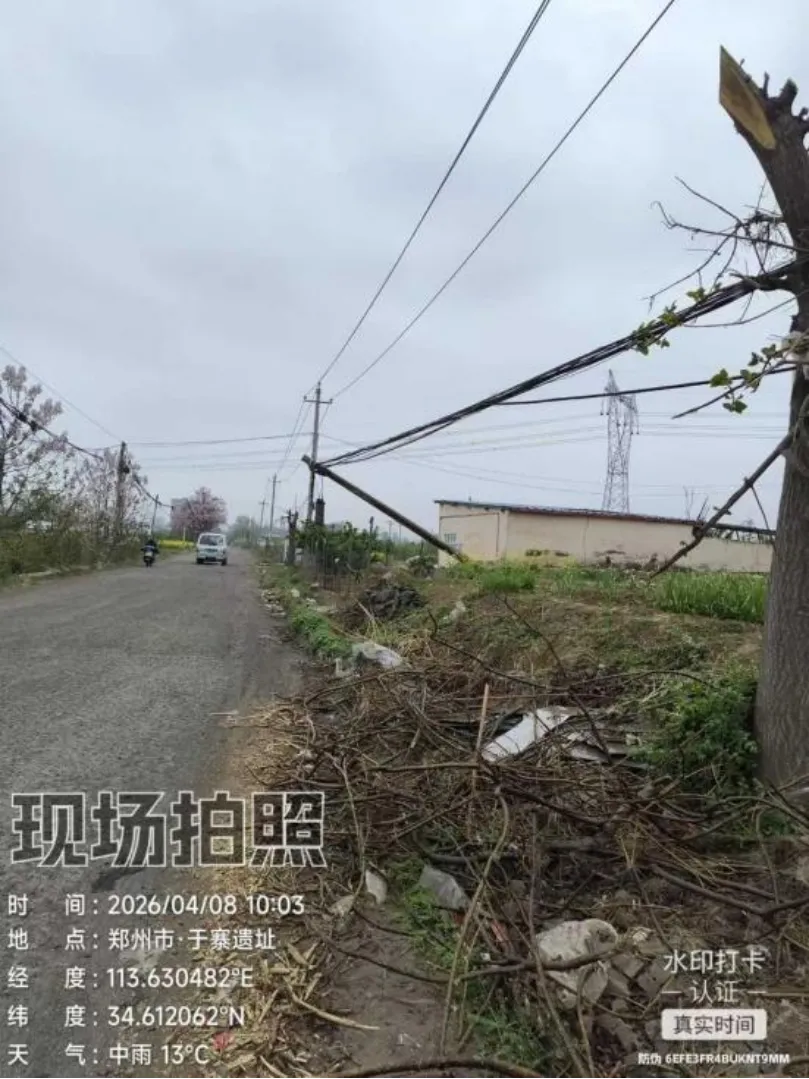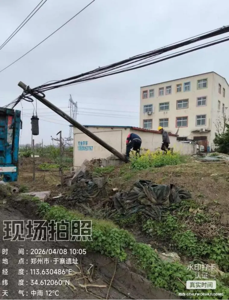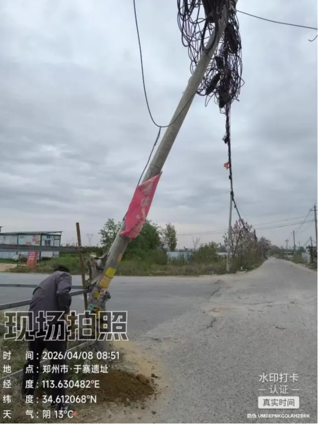 2026年4月8日,郑州于寨路口(紧邻310国道)突发意外,频繁通行的大型货车撞击导致一根通信线杆断裂、一根严重倒伏,承载片区主干光缆的线路受损,不仅威胁周边居民、商户通话上网正常使用,更对国道通行造成严重安全隐患 。
