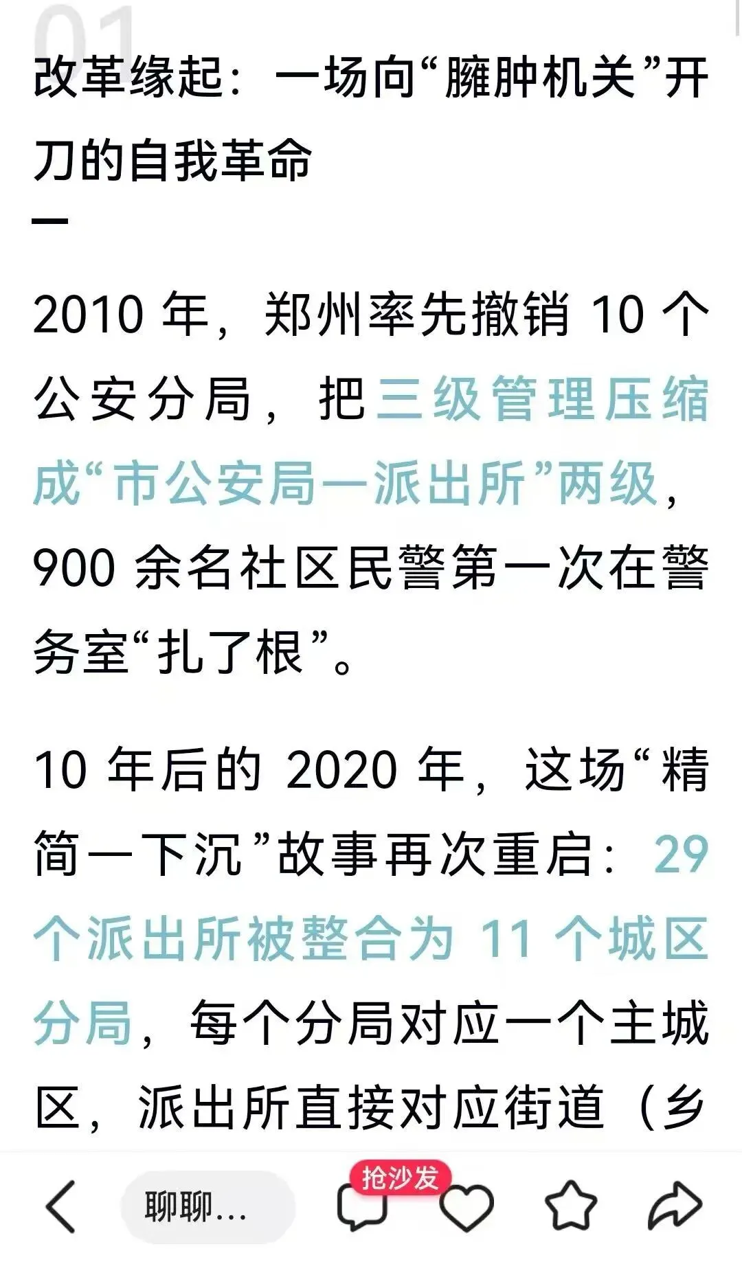 十年前,郑州以破釜沉舟之势推行警务改革,撤销城区公安分局,合并派出所组建 “大派出所”,试图打破层级壁垒、实现警力下沉,打造基层警务改革的标杆样本;十年后,这场声势浩大的改革全面回调,重新恢复 “市局 — 分局 — 派出所” 三级体制,一切退回原点。这场轰轰烈烈又黯然落幕的改革,绝非简单的体制往复,而是一次深刻的改革镜鉴,折射出基层治理改革中激进冒进、脱离实际、违背规律的致命误区,更留下值得所有改革者深思的沉重命题。