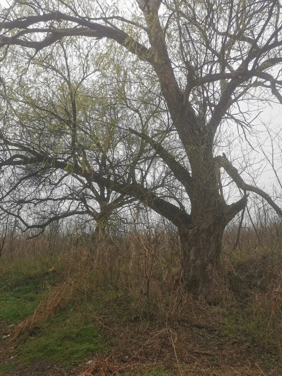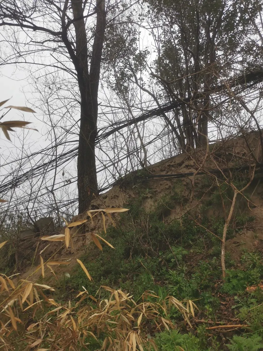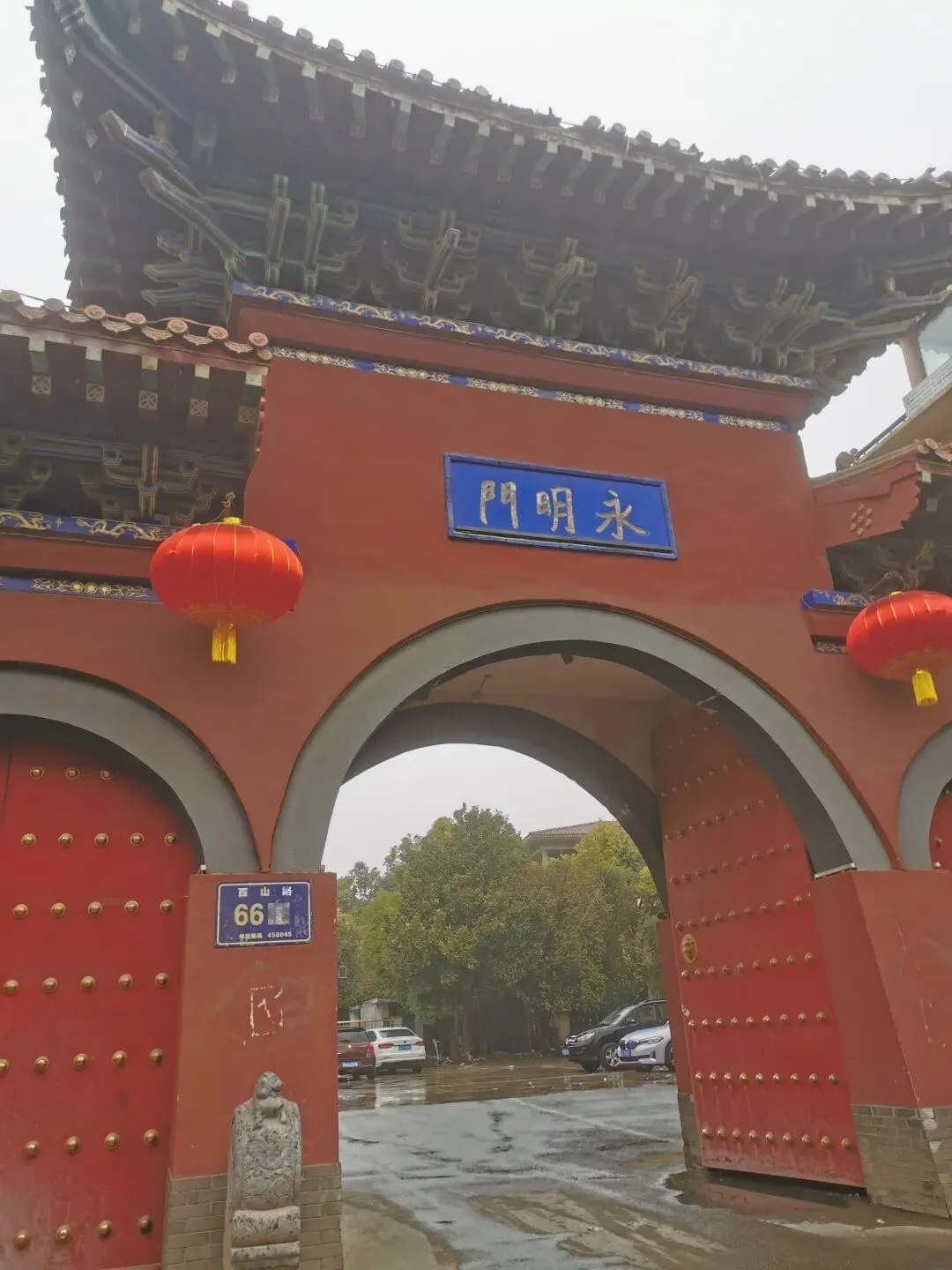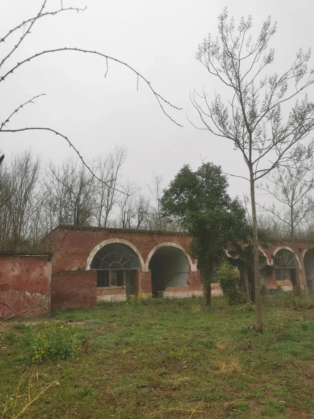 往前走,看见一大门紧锁的院落,“保护文物,禁止入内”。隔着铁栅栏,可以看到里面有一排拱圆门红房子,不知干啥用。手机伸进栅栏缝隙,拍到院子里立有两个宣传牌,不知宣传什么内容。找不到入口,只好拍了几张遗址外围的土堆及土堆上的树及裸露的树根。返回时,看到保护区内有农户种有庄稼和蔬菜。既然农户可以进去,一定另有入口。往前走,是两棵枯枝新绿大柳树。周围阒无一人,再往前走已无路径,看见远处有土砖瓦堆堆在前面。心生惧意,只好折身返回。兴致勃勃去看西山遗址,结果看了个“寂寞”!心想,这就是“全国重点文物保护单位”吗?难道被遗忘或被遗弃了吗?看过很多文物“国保”单位,大多保护得“高大上”,是一方金字招牌;游人如织,有专人管理维护。到了西山遗址,咋就差别那么大呢?所好回来路上,顺道看了这个村的仿古“永明门”和毛主席巨大雕像,也算弥补了些许遗憾。