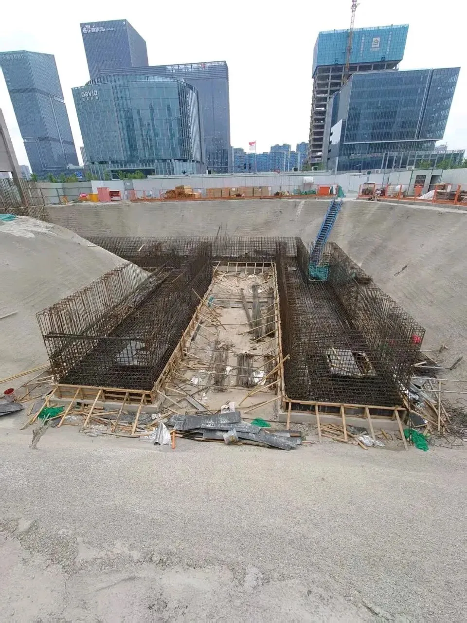 在现场,记者看到施工人员正围绕着一处基坑进行紧张的作业准备。一位现场的老师傅告诉记者,这里正在进行的是给排水等配套设施的建设,很快就要对主体结构进行下一步的混凝土浇筑了。目前,像基坑支护、土方开挖这些前期基础工程都已经基本结束,核心部分的钢筋结构也已基本绑扎完毕,一切都在朝着最终目标稳步推进。