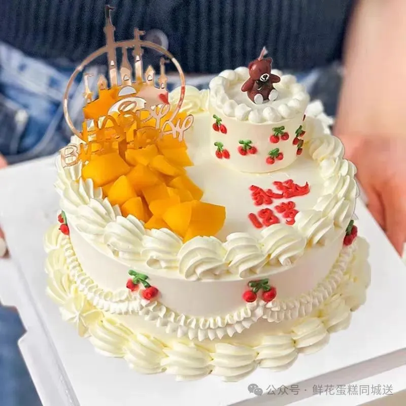 我们的蛋糕款式丰富多样,无论是儿童水果蛋糕还是祝寿蛋糕,我们都有丰富的样式供您选择。对于小朋友来说,生日是一年中最期待的日子。我们专门为小朋友们设计了可爱的儿童水果蛋糕,蛋糕上装饰着各种色彩鲜艳的水果,造型俏皮可爱,仿佛是一个童话世界。小朋友们看到这样的蛋糕,一定会爱不释手。而对于长辈们来说,祝寿蛋糕则充满了浓浓的祝福。我们用精湛的技艺制作出精美的祝寿蛋糕,蛋糕上写着吉祥的祝福语,搭配着新鲜的水果和美丽的花朵,寓意着健康长寿、幸福美满。